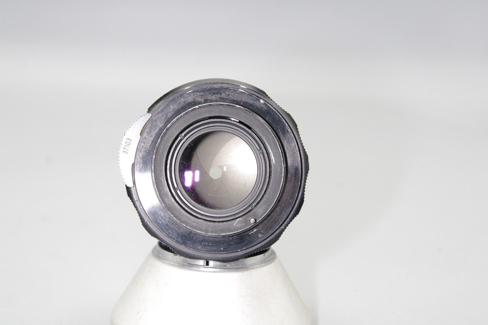 Glass is clean with no haze or scratches. Focus ring smooth and well-damped. Aperture blades snappy and free from oil. Mount shows light signs of use. Barrel and engravings well preserved.