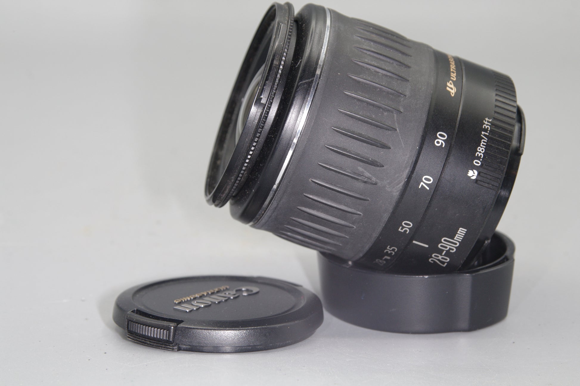 Canon EF 28–90mm USM II lens, tested Canon EF zoom lens UK, vintage Canon kit lens, EF mount 28–90mm f/4–5.6, Canon EOS film camera lens, collector-grade Canon EF lens, Ultrasonic autofocus Canon lens