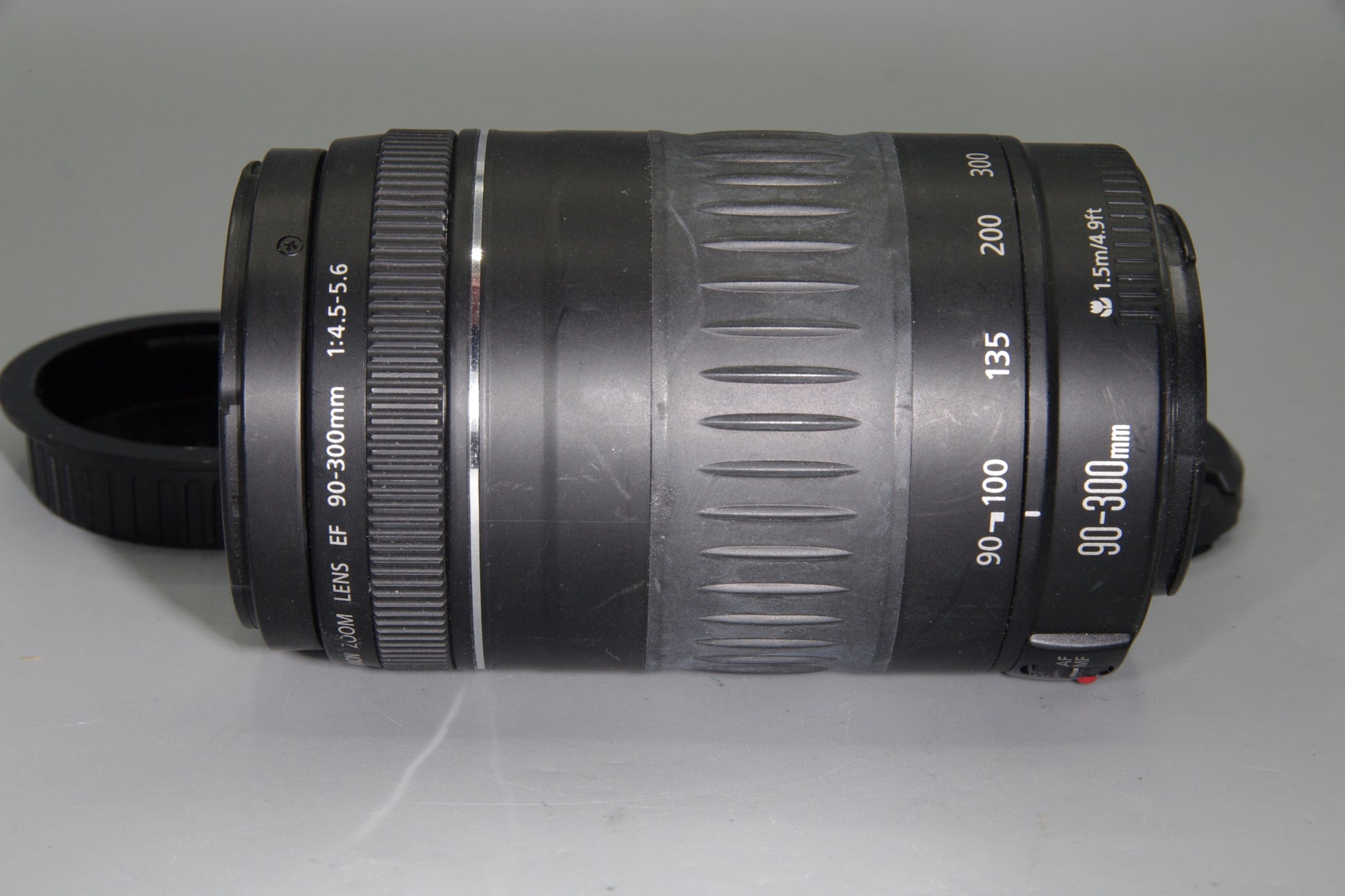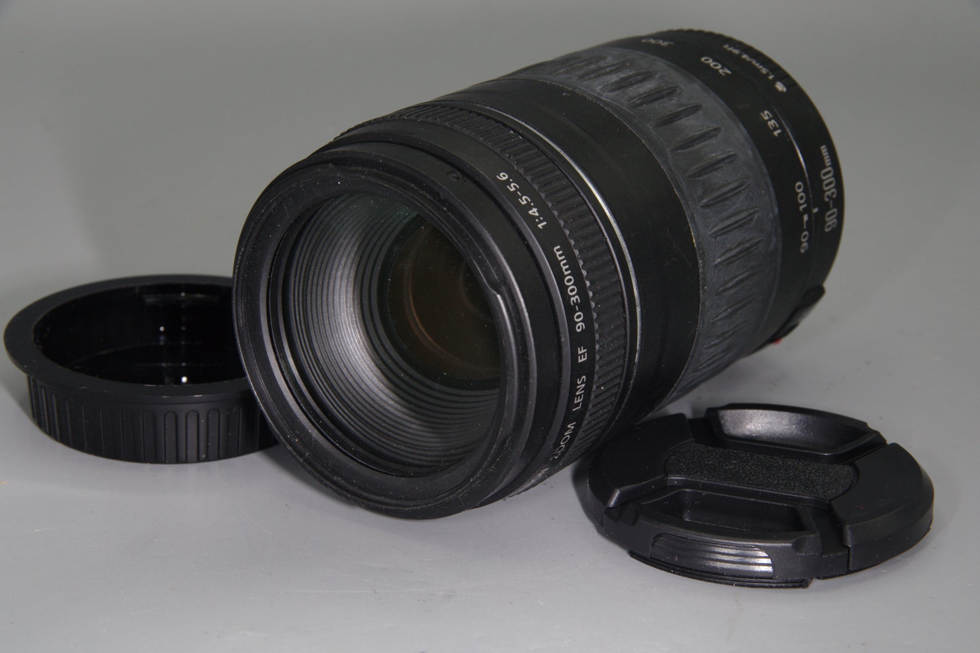 Canon EF 90-300mm lens non-USM, budget telephoto zoom for Canon DSLR, EF mount lens with caps, Canon 90-300mm f/4.5-5.6 AF lens excellent condition, wildlife sports lens Canon EF