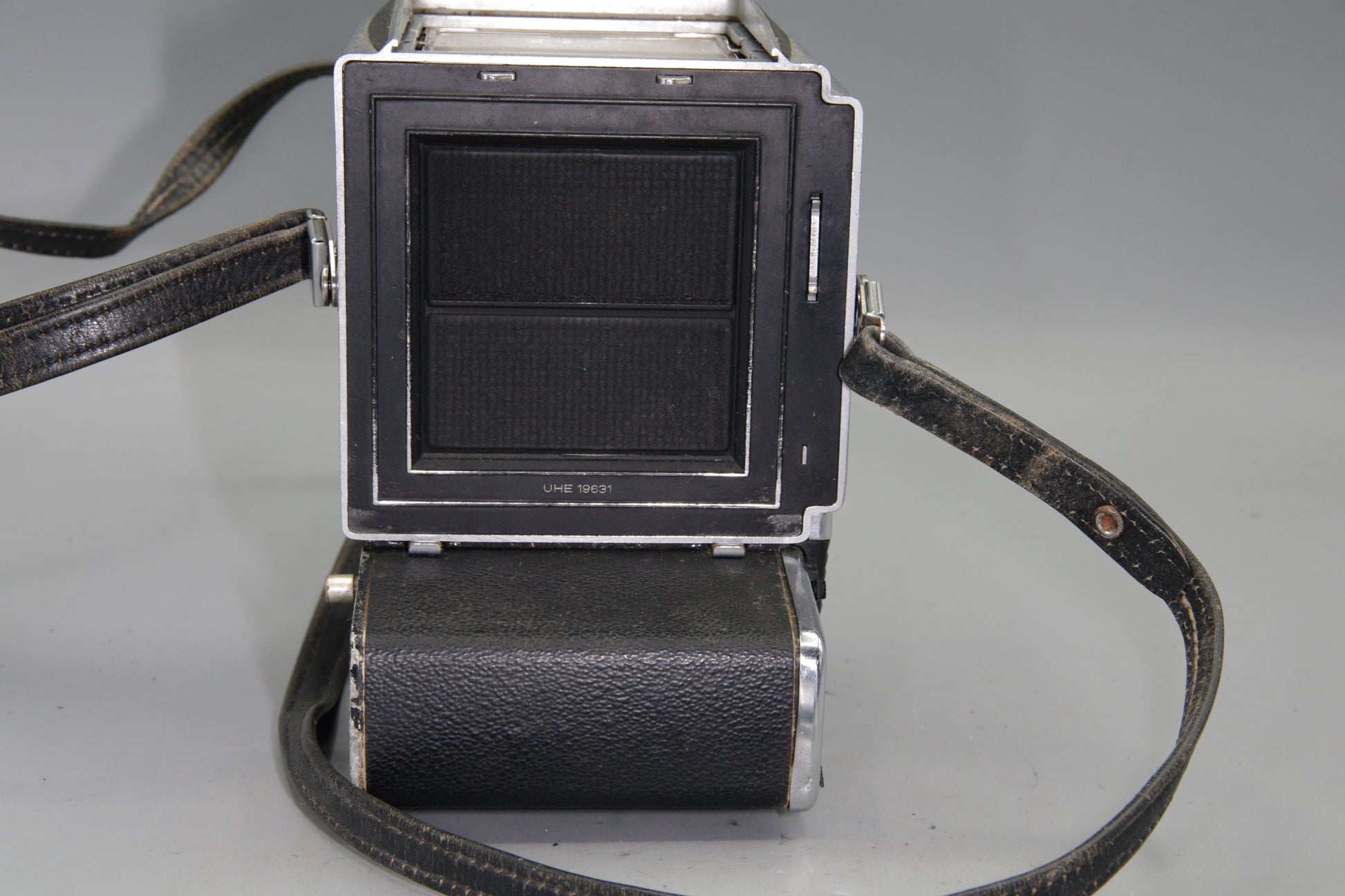 The 500ELM improved upon the earlier 500EL with a removable focusing screen and updated electronics. It shares the same robust build and historical pedigree, famously linked to NASA’s lunar missions. While this unit is incomplete and untested, it may appeal to collectors seeking restoration projects or display pieces. Battery adapters for modern use are widely available.