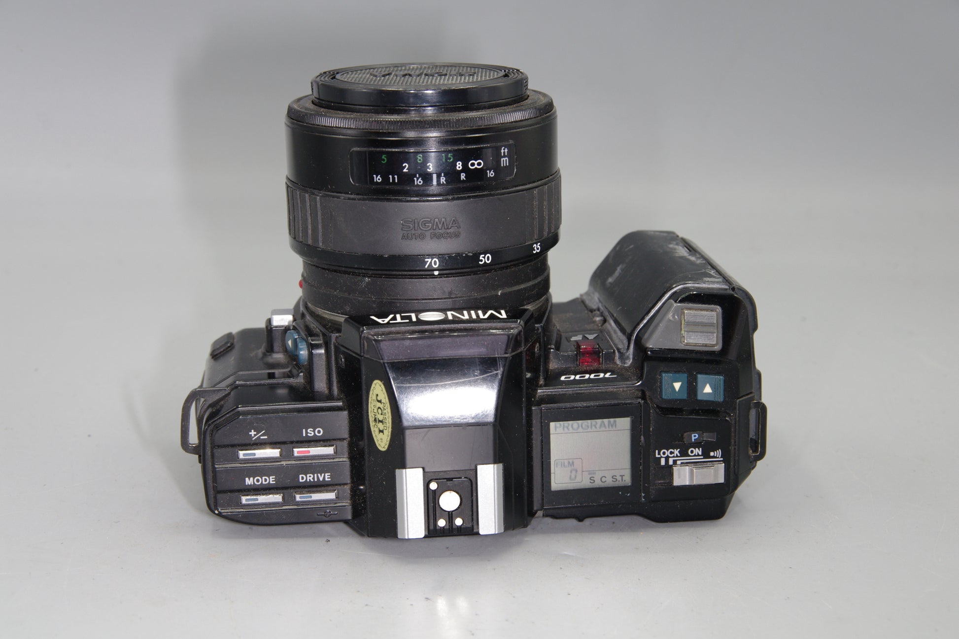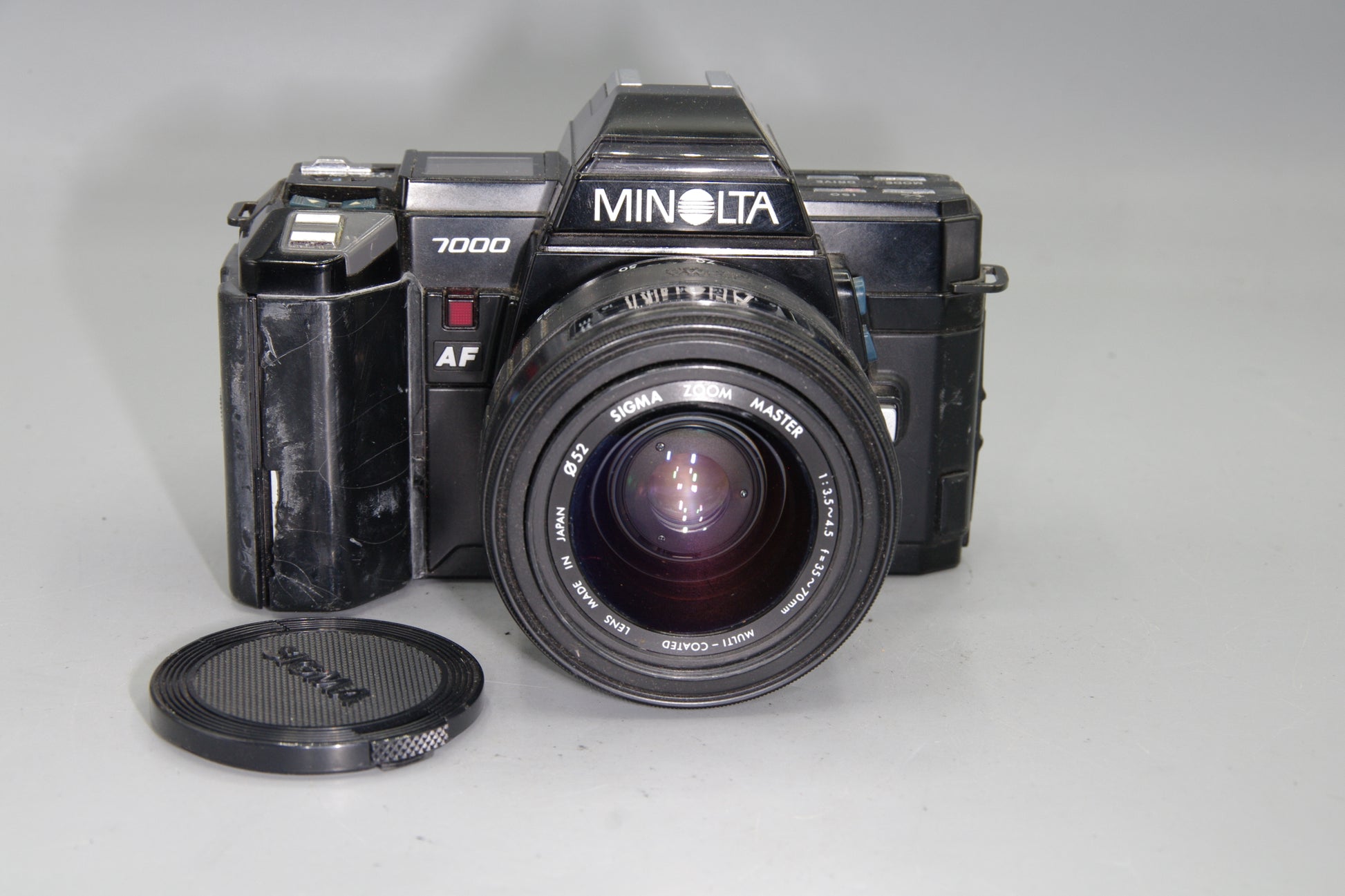 Minolta 7000 AF camera, Sigma 35–70mm autofocus lens, vintage 35mm SLR kit, Minolta A-mount film camera, early autofocus camera, tested film SLR