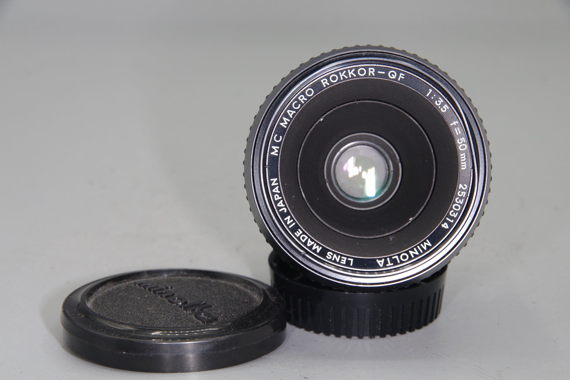 Minolta MC Macro Rokkor-QF 50mm f/3.5 lens, vintage Minolta macro lens UK, manual focus macro lens, Minolta SR mount lens for sale, Rokkor 50mm macro very good condition, pre-owned Minolta MC lens, classic 35mm SLR macro lens, Minolta macro prime lens, legacy Minolta lens, collectible Rokkor macro lens