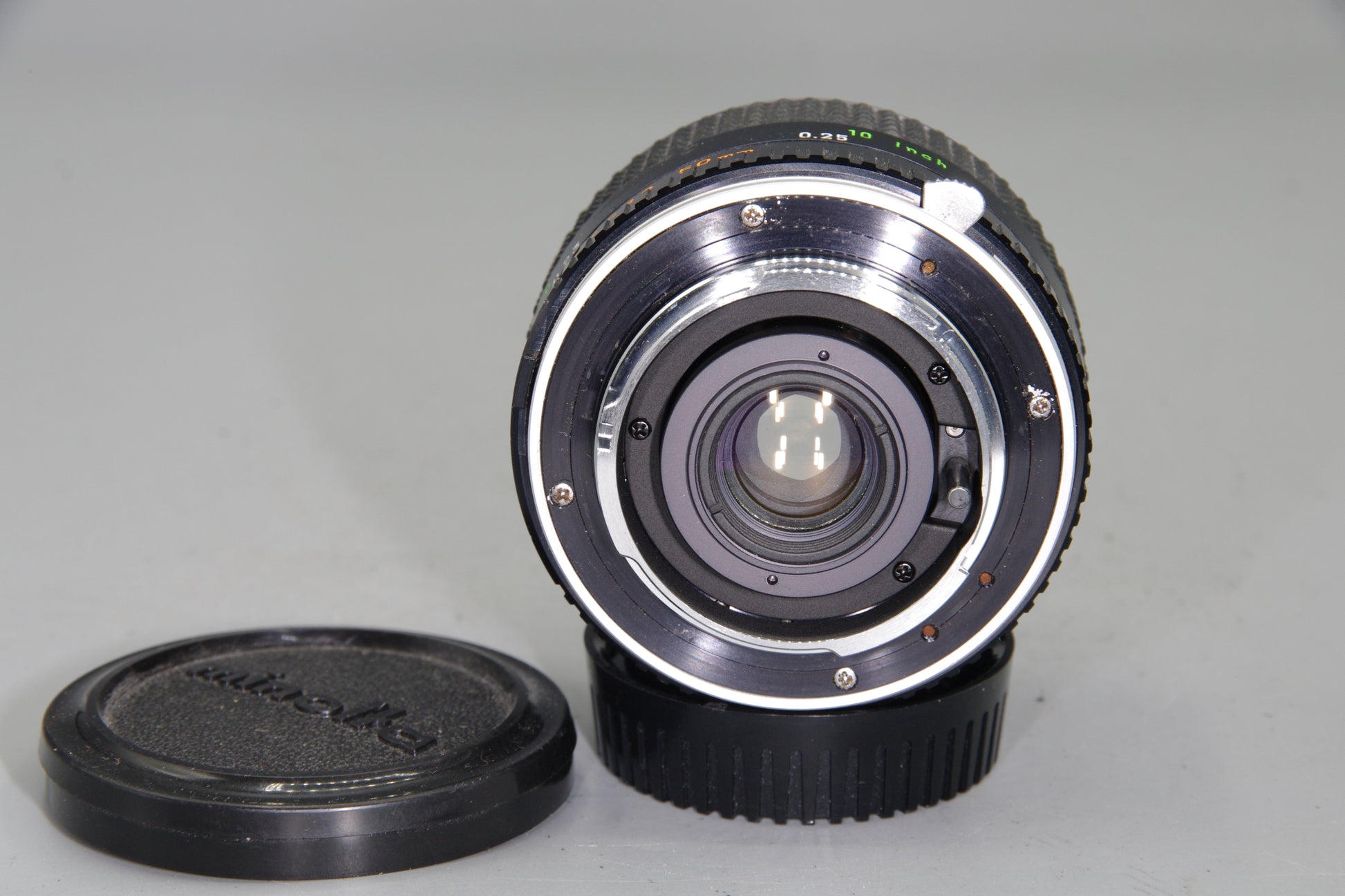 Glass is clean with no haze or scratches. Focus ring is smooth and well-damped. Aperture blades are snappy and free from oil. Mount shows light signs of use. Barrel and engravings well preserved.