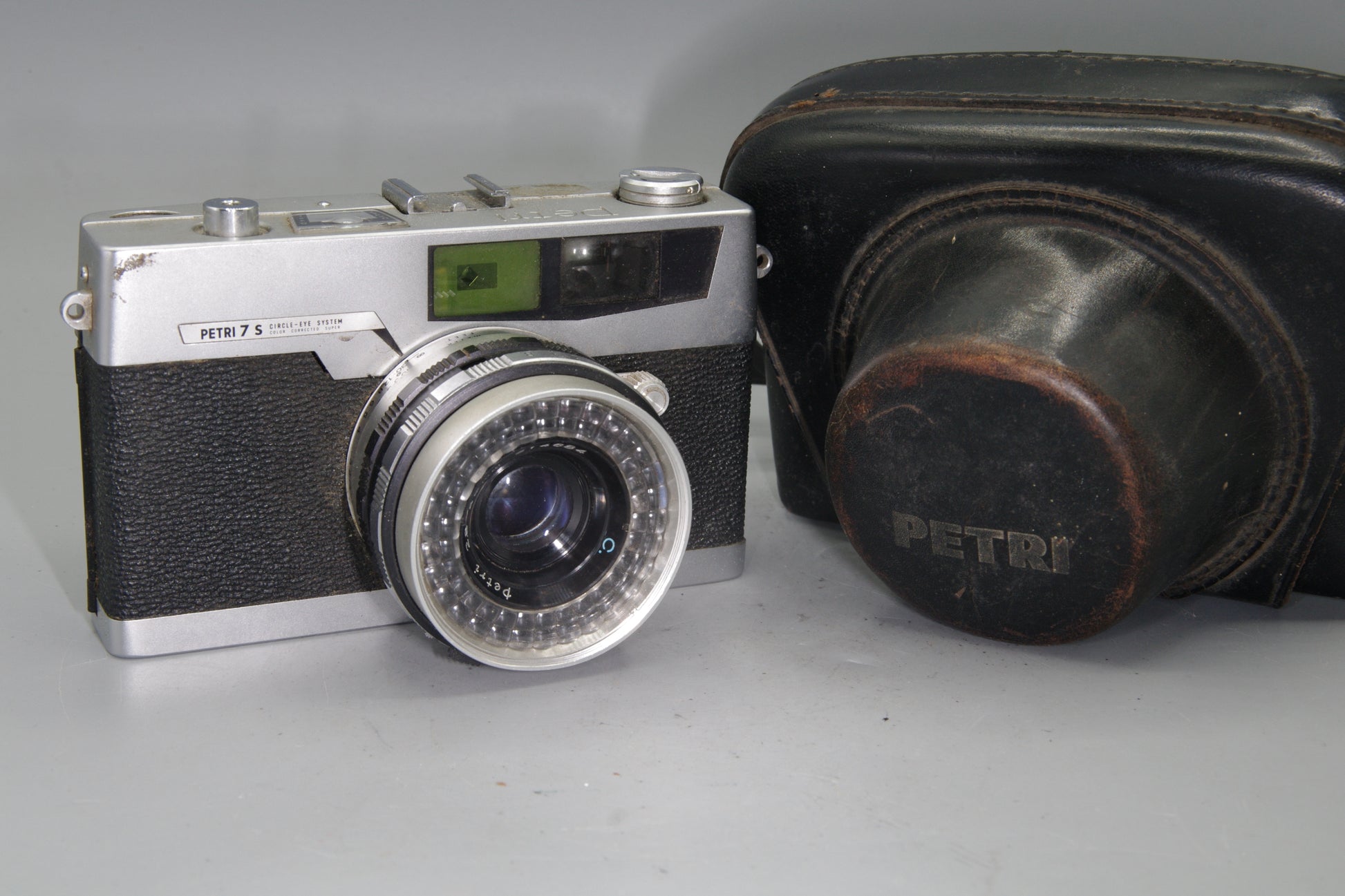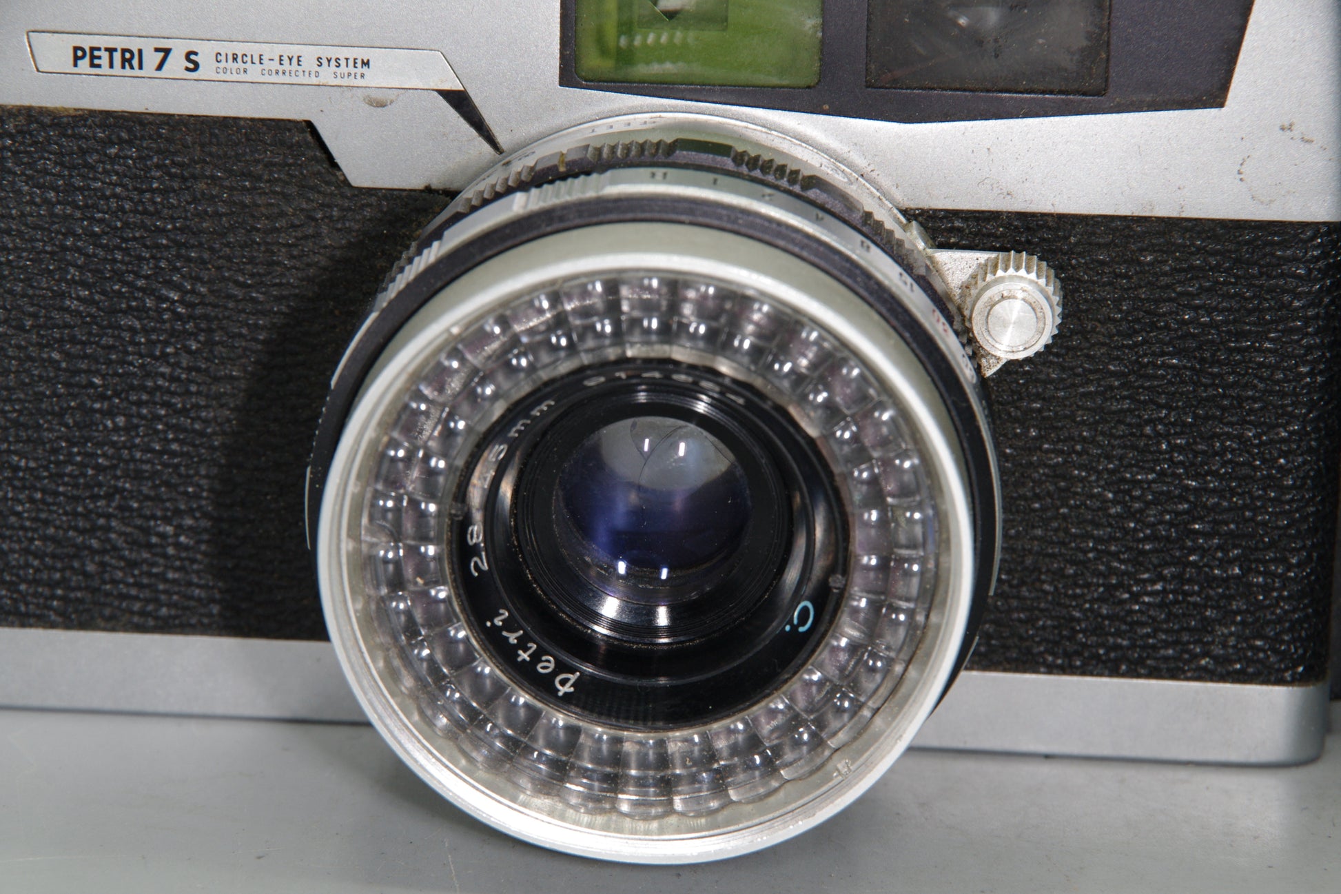 Petri 7S rangefinder, 35mm film camera, vintage Petri camera, Japanese rangefinder, Petri 45mm f2.8 lens, selenium meter camera, classic film camera, Petri 7S UK, retro photography gear, Green-o-Matic focusing